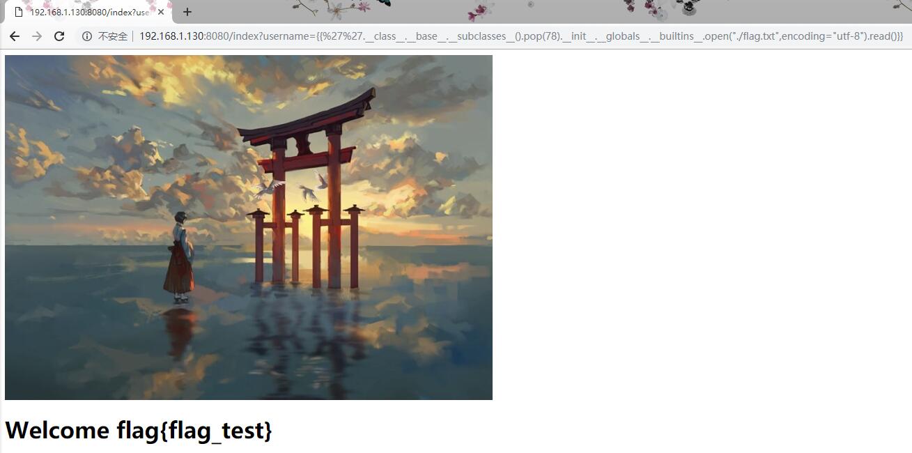 - 这里的鸟居图片既是另一个提示。jinja2项目的LOGO
